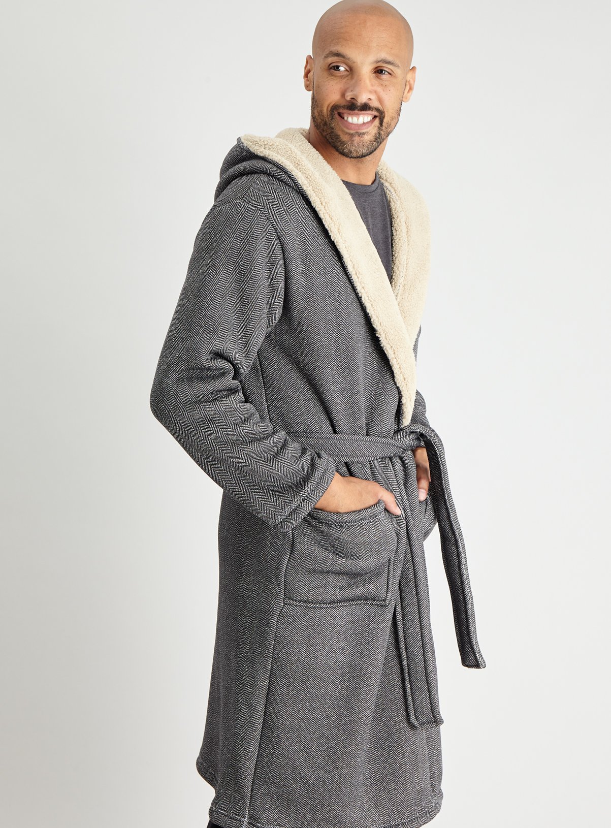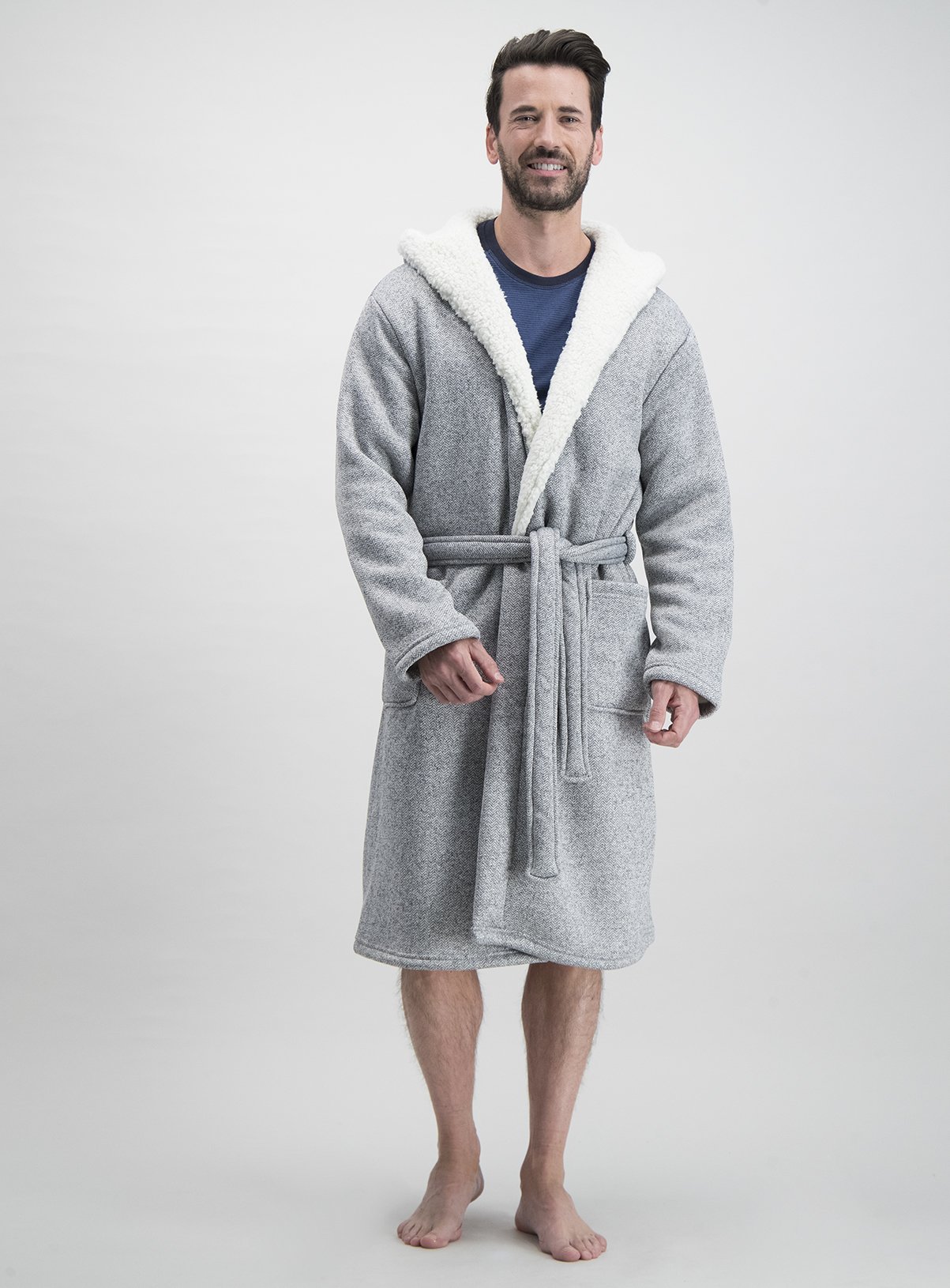Herringbone Fleece Dressing Gown – Grey